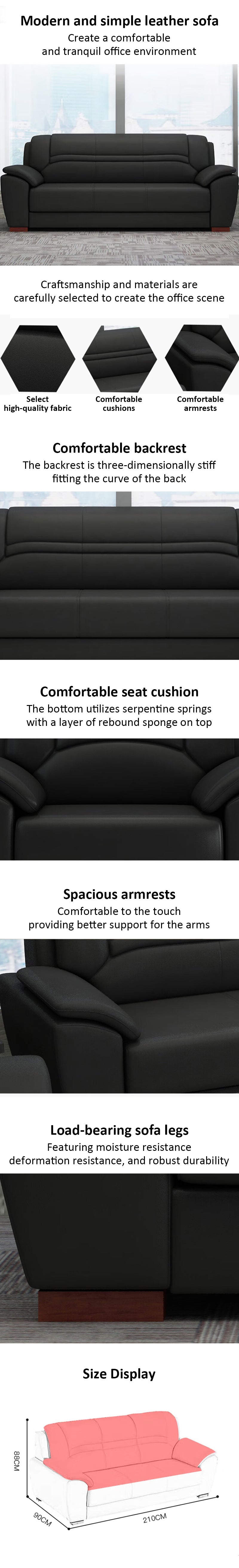 Office sofa, office reception guest sofa in leather, black