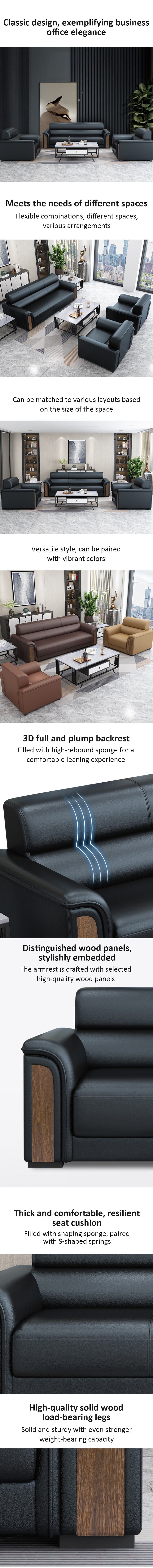 Office sofa, simple and modern business reception guest leather sofa and coffee table, black