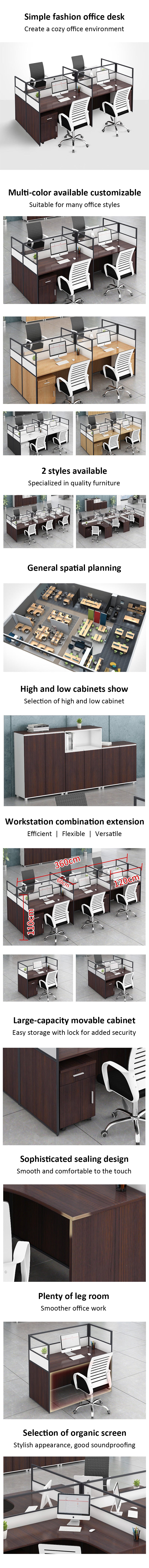 Office desk with card slot partition, employee computer desk with cabinet and chair